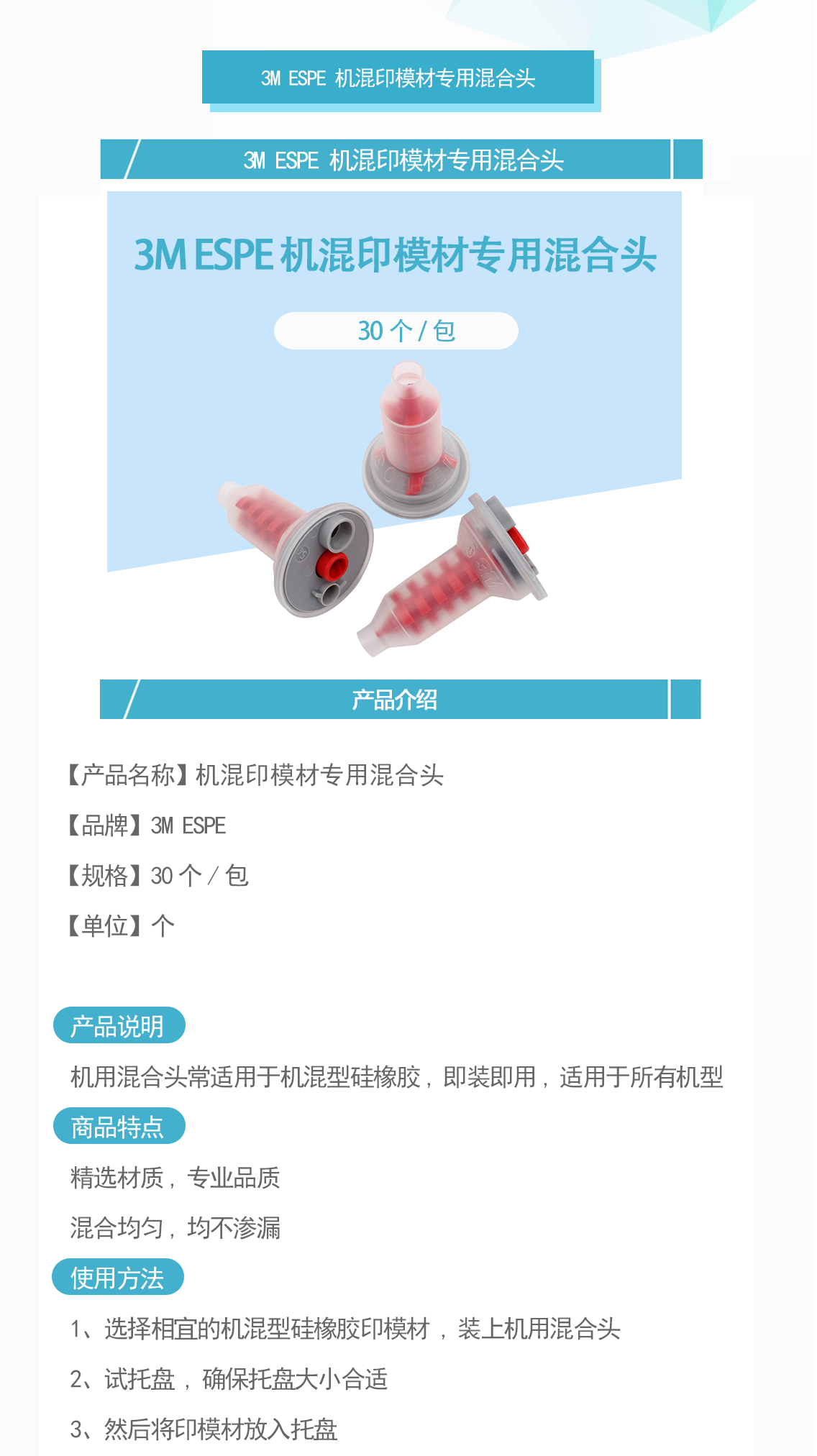 3M ESPE Impregum 机混印模材专用混合头 聚醚专用 30个/包,77919