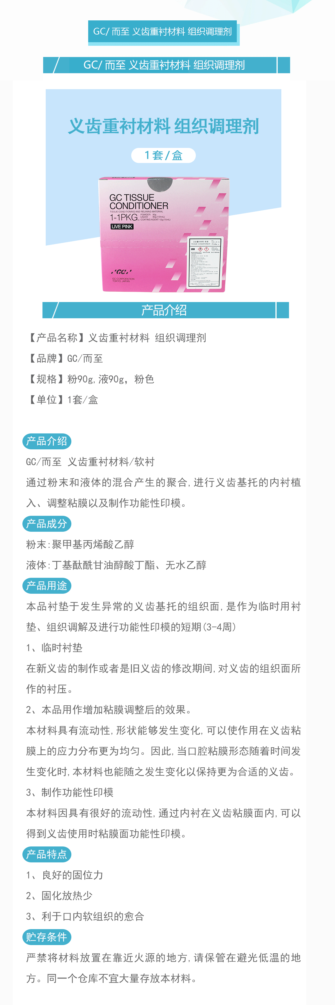产品名称:义齿重衬材料 组织调理剂