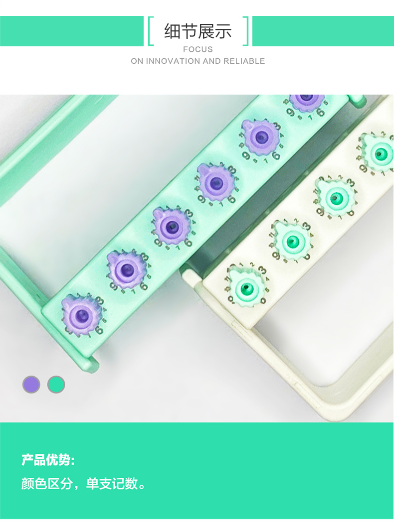 产品名称:根管锉记数消毒盒 记忆型消毒盒 单支记数,6孔,使用记数12次