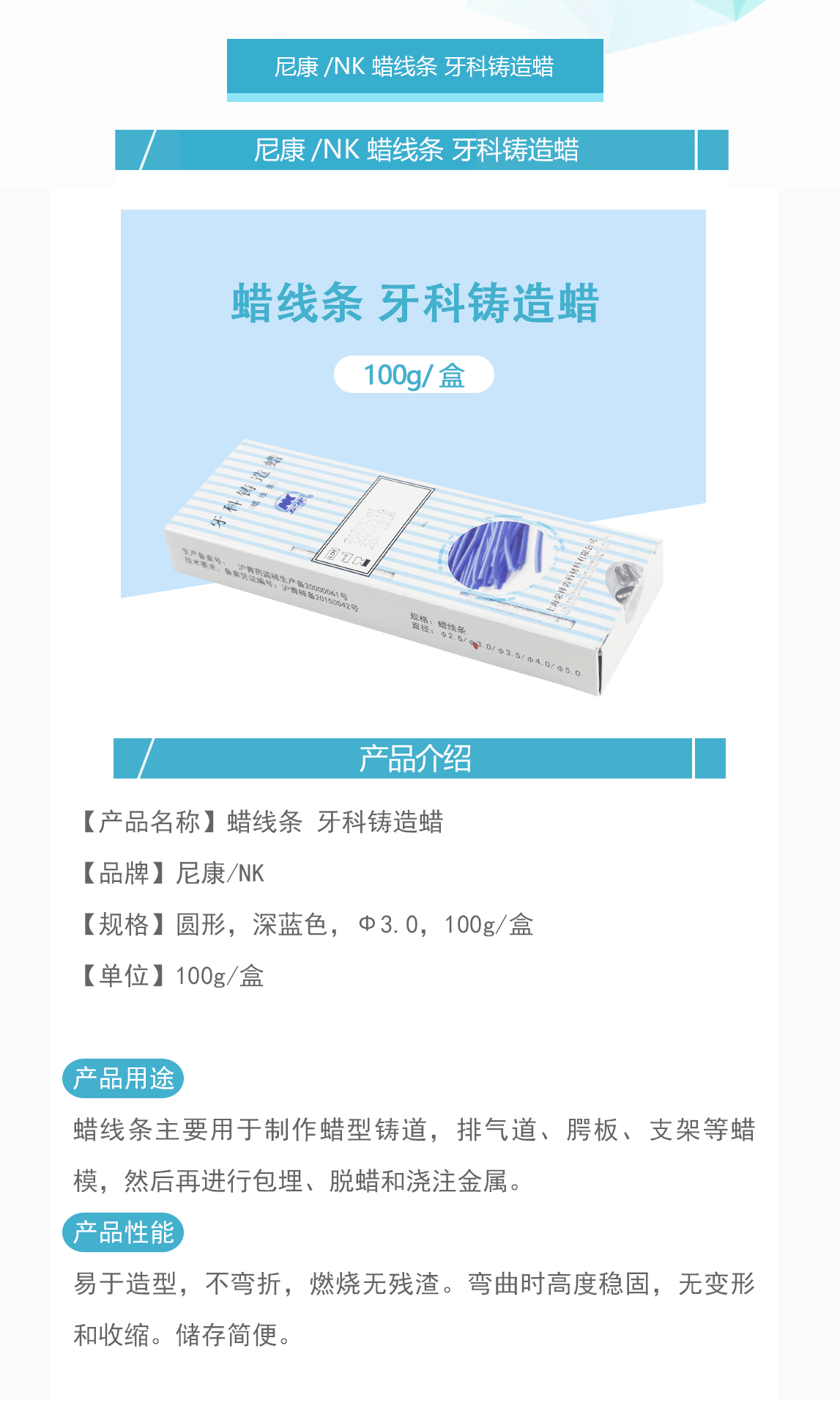 产品名称:蜡线条 牙科铸造蜡 圆形,深蓝色,Ф3.0