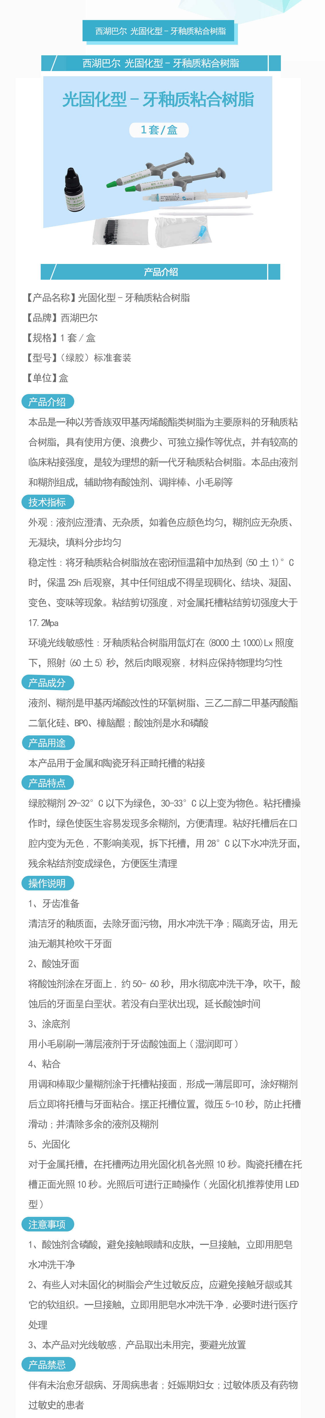 产品名称:光固化型-牙釉质粘合树脂(绿胶)标准套装