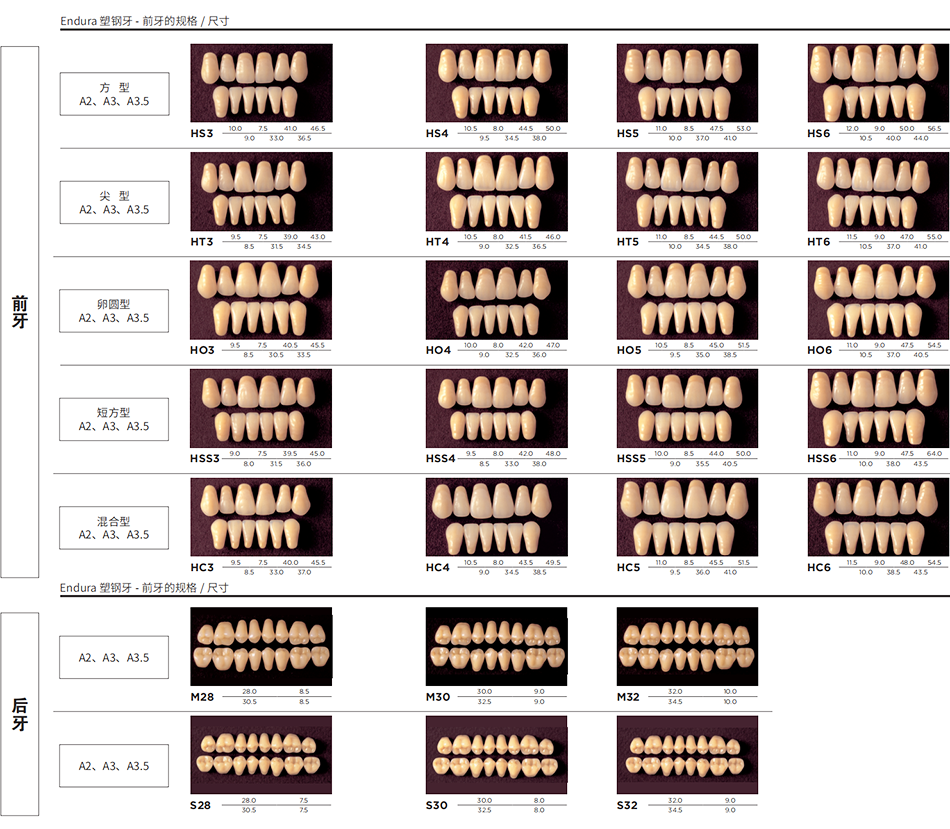 产品名称: 塑钢牙/树脂牙(全口)HSS短方形