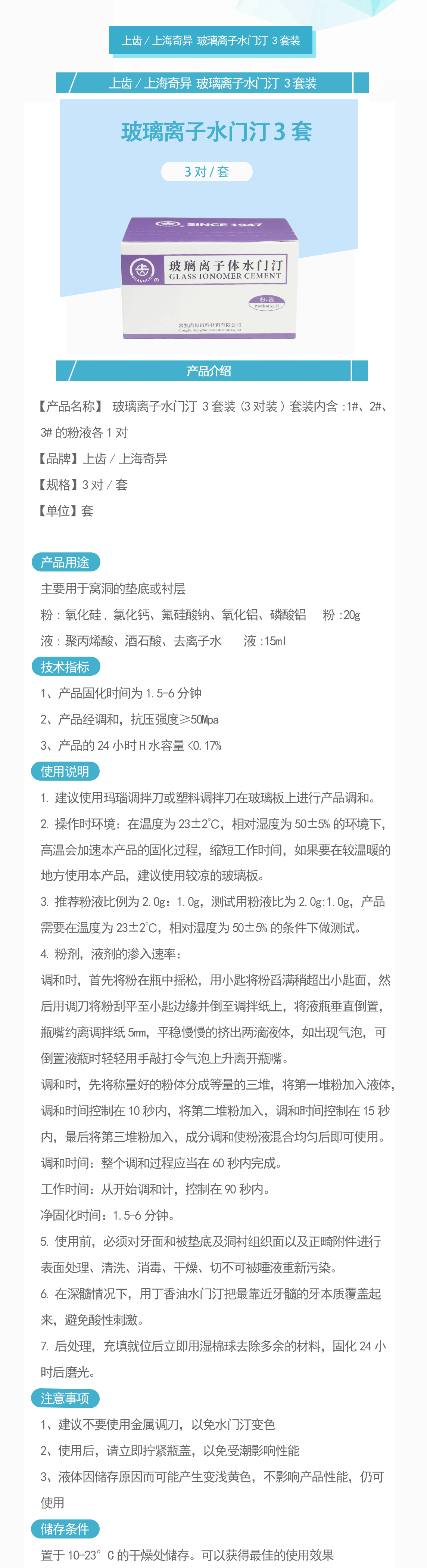 上齿/上海奇异 玻璃离子水门汀 3套装(3对装)套装内含:1#、2#、3#的粉液各1对