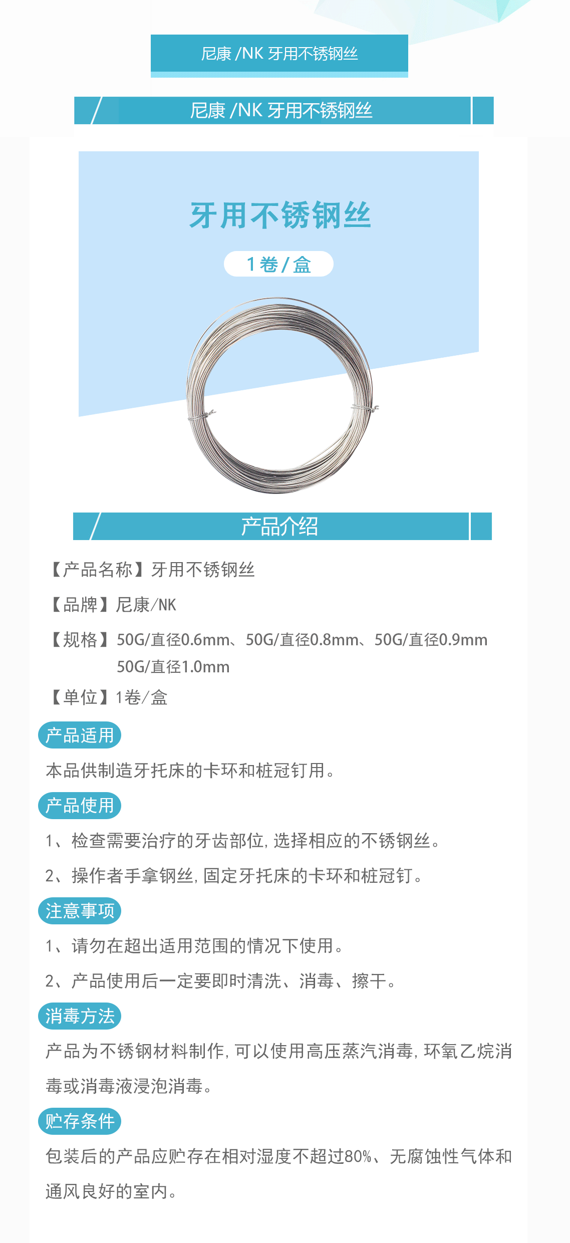 尼康/NK 牙用不锈钢丝 50G