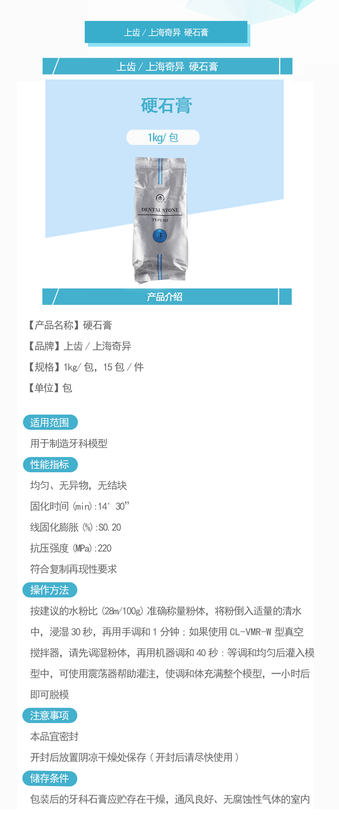上齿/上海奇异 硬石膏 1KG/袋