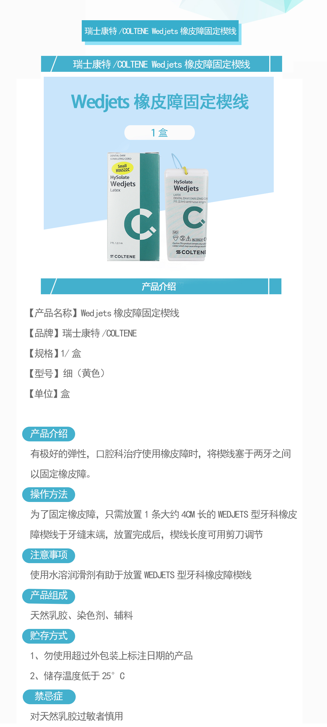 产品名称:Wedjets橡皮障固定楔线