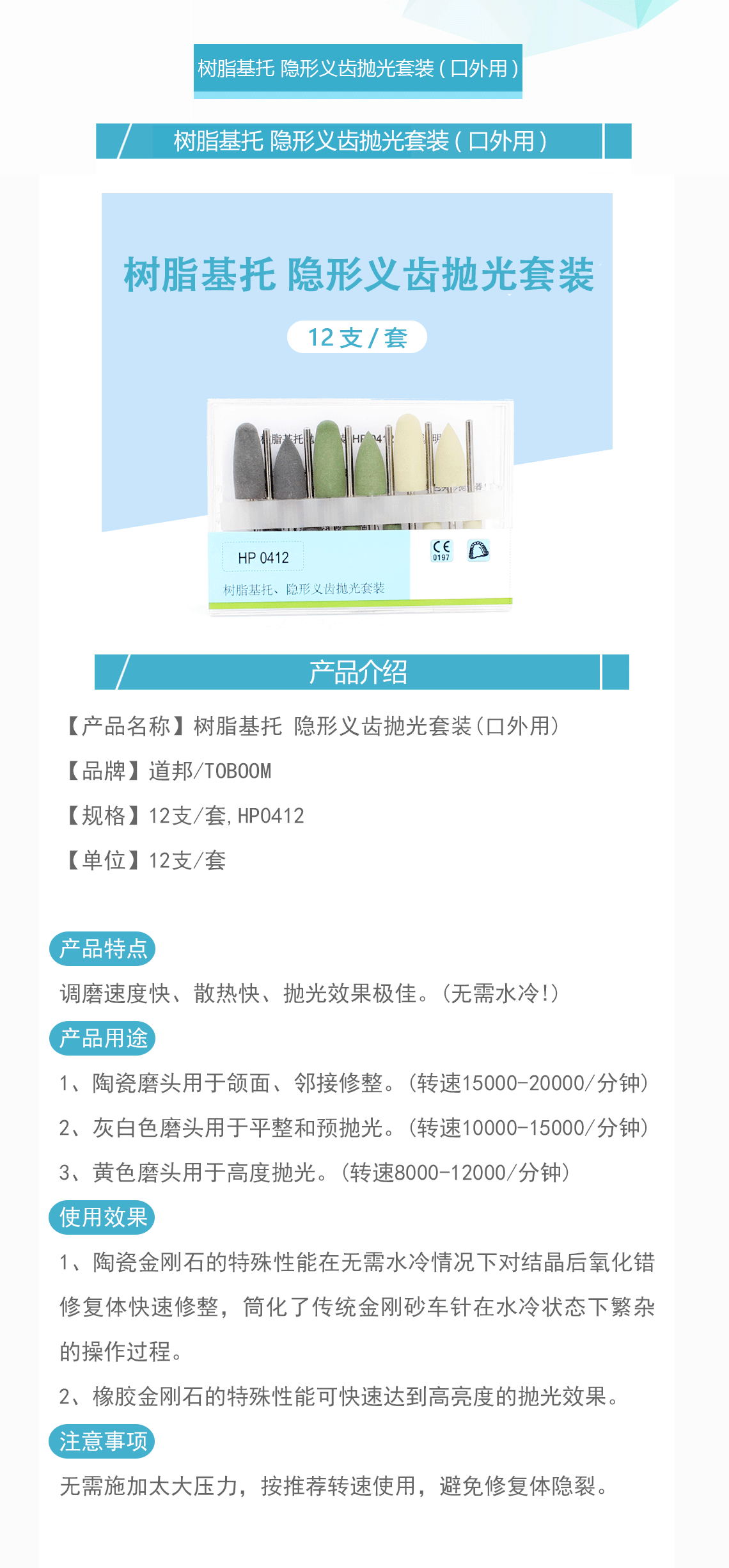 产品名称:树脂基托、隐形义齿抛光套装(口外用)-12支/套,HP0412