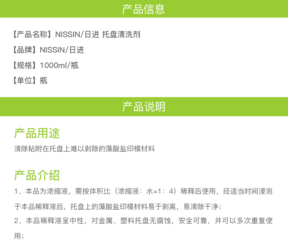 日进/NISSIN 托盘清洗剂 1000ml/瓶