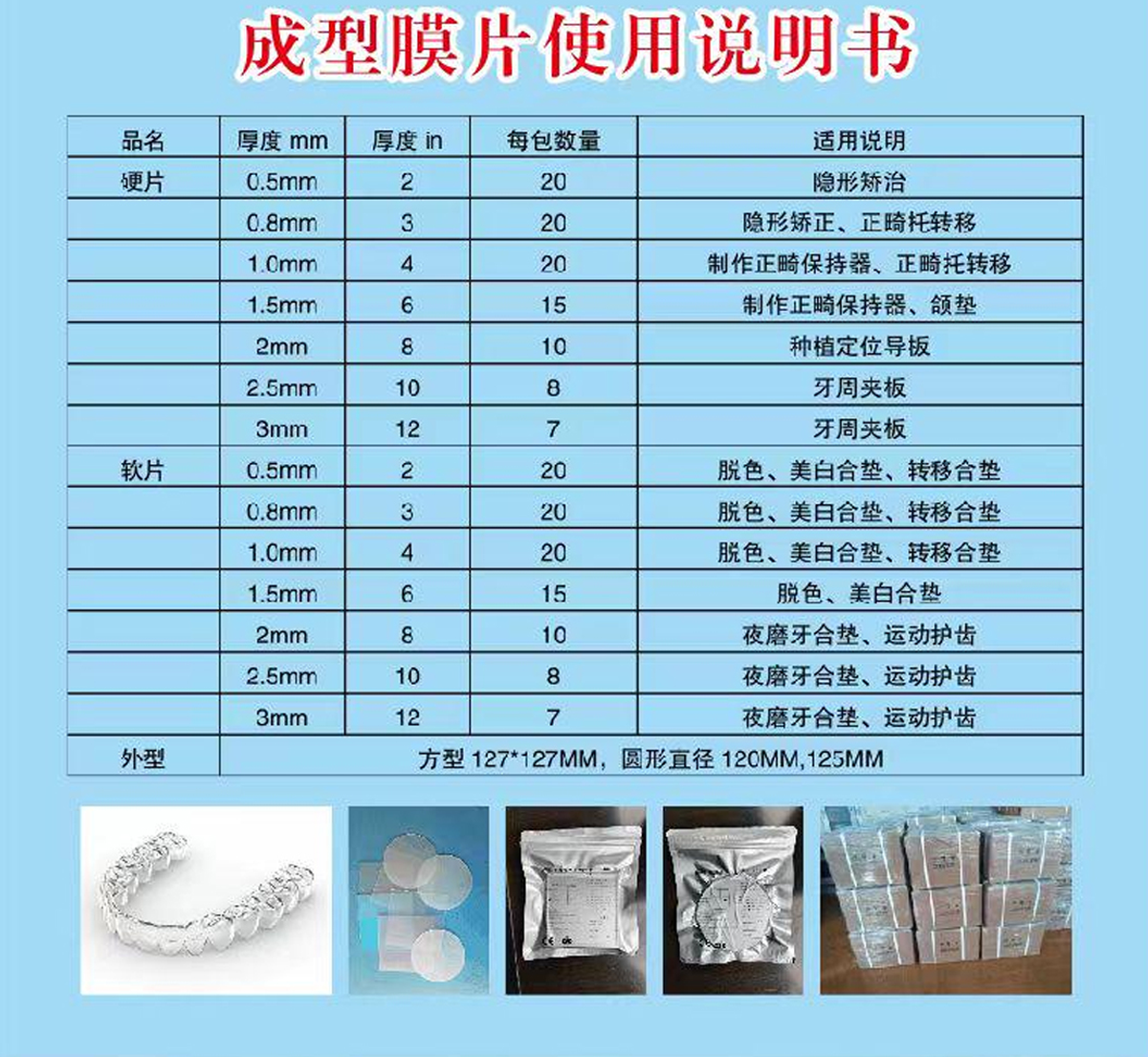 产品名称: 成型模片 代型材料