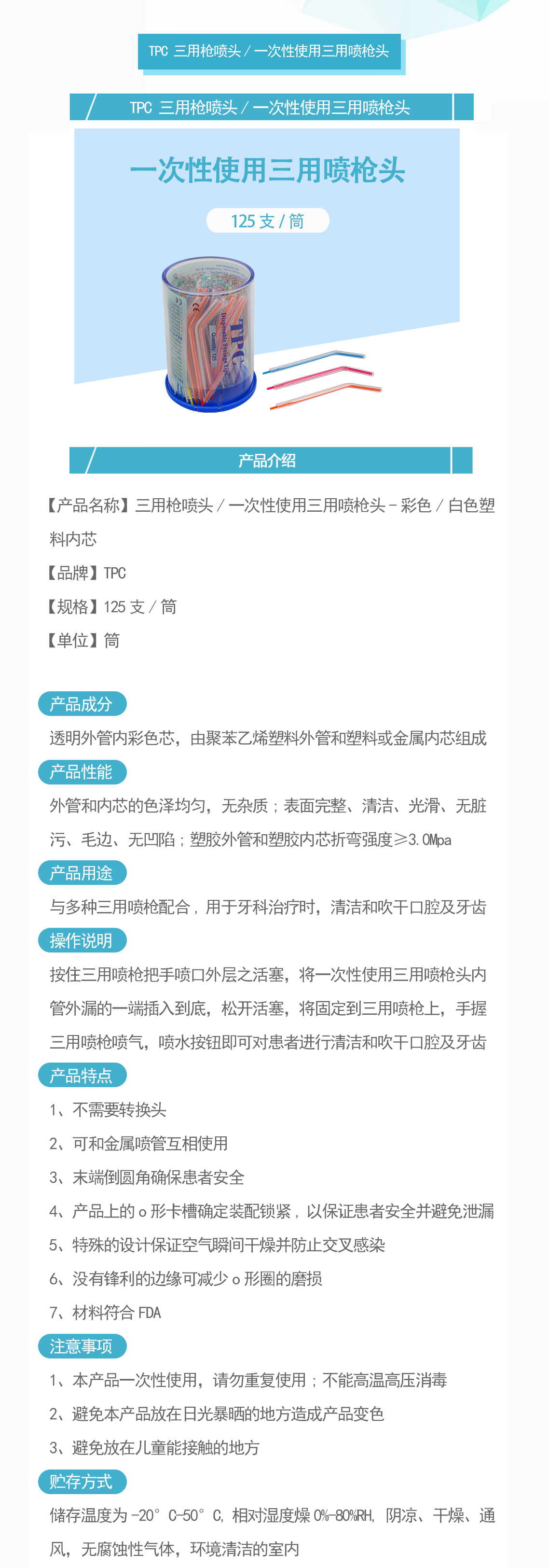 产品名称:三用枪喷头/一次性使用三用喷枪头