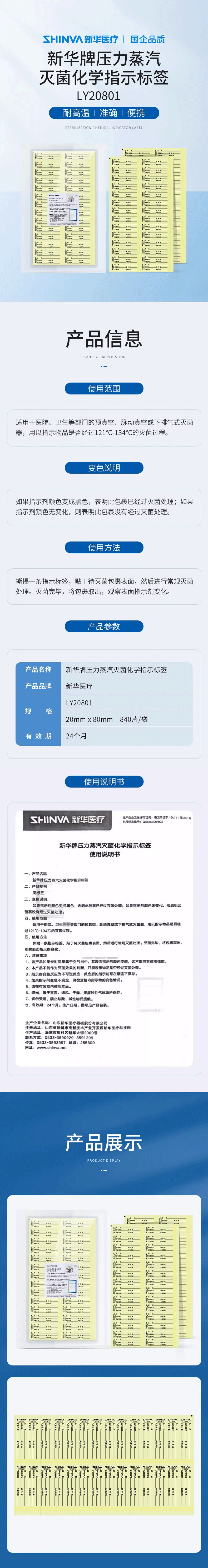 产品名称:新华牌压力蒸汽灭菌化学指示标签