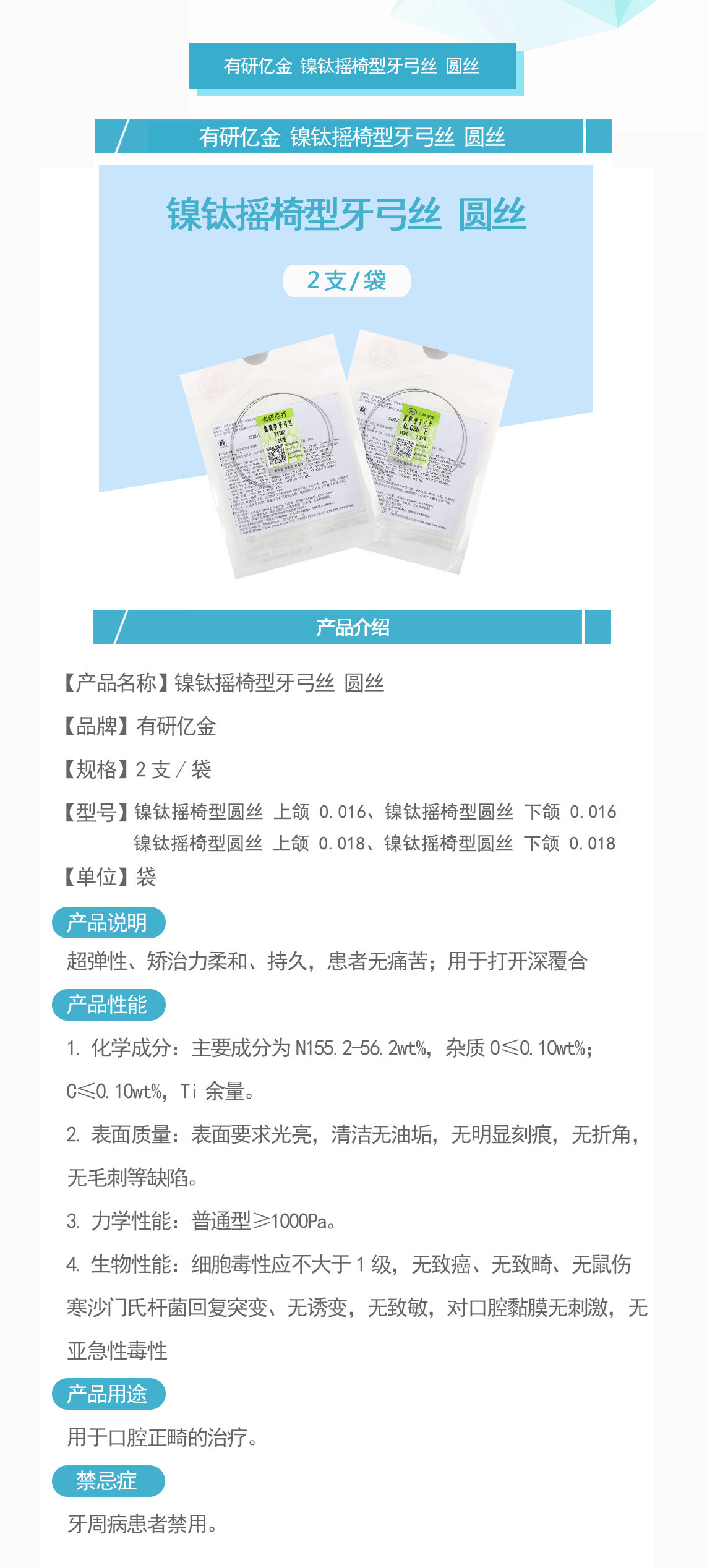 产品名称:镍钛摇椅型牙弓丝