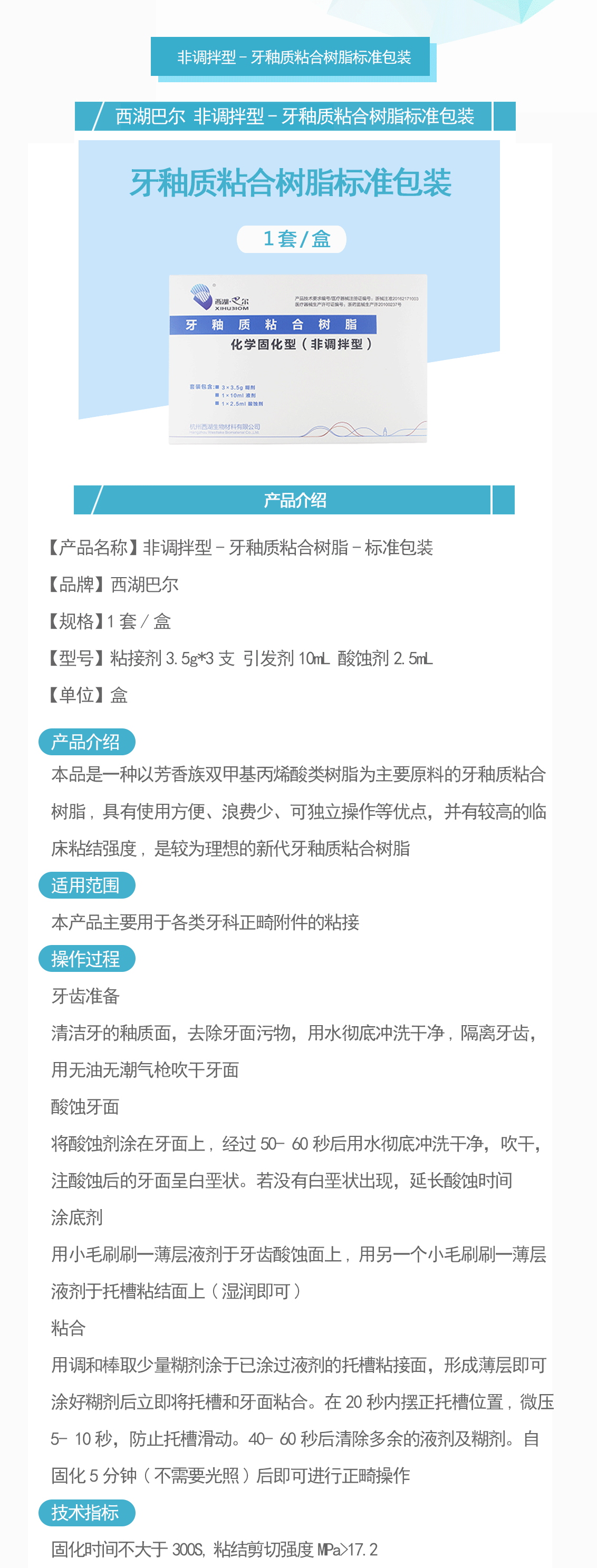 西湖巴尔 非调拌型-牙釉质粘合树脂标准包装:粘接剂3.5g*3支 引发剂10mL 酸蚀剂2.5mL