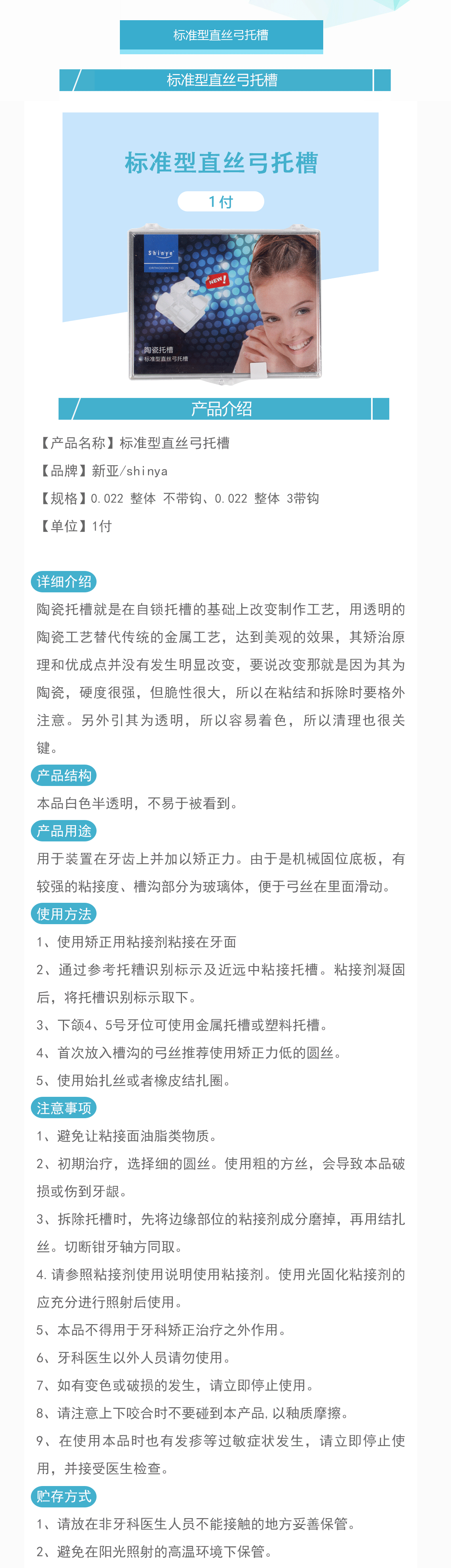 产品名称:标准型直丝弓托槽